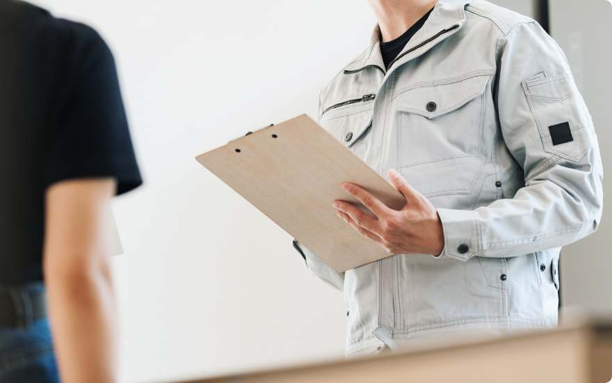 見積もりは完全無料。追加費用が発生する場合も事前にしっかりご説明し、ご了承をいただいてから作業を進めますので、安心してご依頼いただけます。